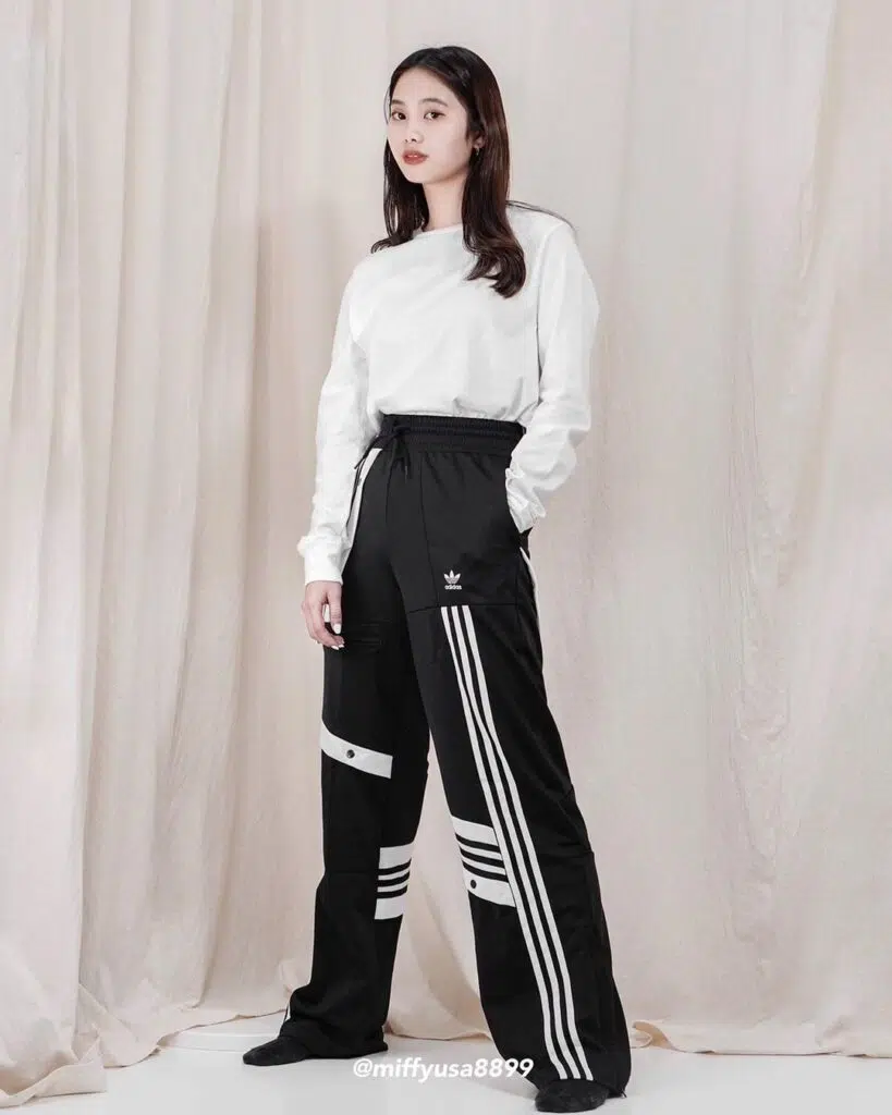 - Try to avoid dress-like or flowy cut tops on top of Adidas pants, as the styles may clash and form an incoherent-looking outfit.