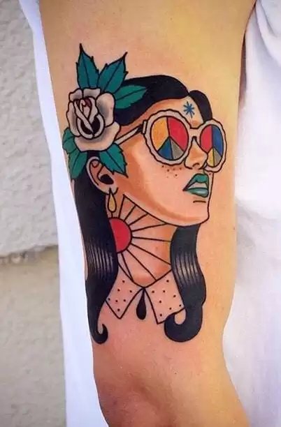 The peace sign is one of the most frequently tattooed design. Despite being cliche, we really like this modern take on it featuring colorful flowers that give a revamped look.