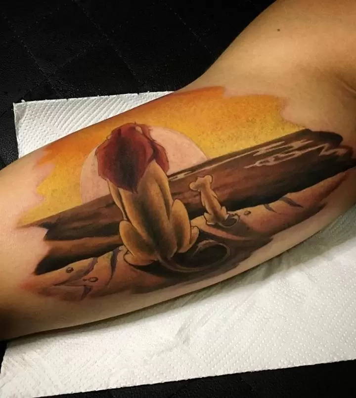 We would be surprised if there was no Lion King fan. If you love the iconic Simba and Mufasa scene, you could consider getting it done on your forearm like this.