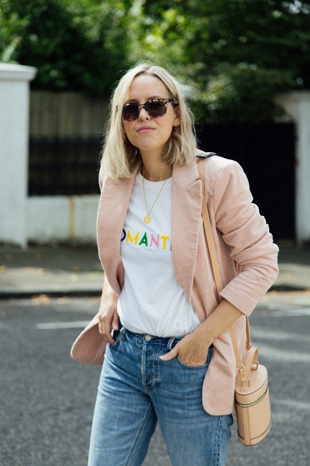 You can put on a lavish Corduroy blazer in pastel shade by H&M. It will cost you no more than $39.99. The best deal about this chic article is that it can be paired with any simple tee and jeans pants. You can get it from H&M’s official site.