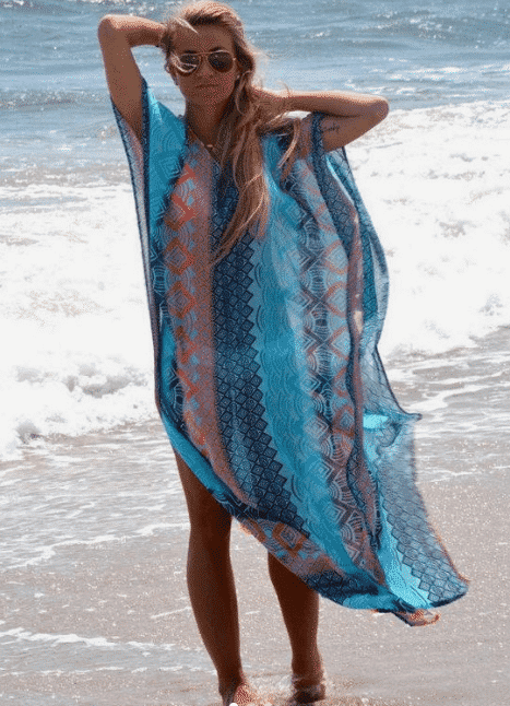 Summers is all about beauty and nature. So, who would not want to add that beauty to their beach look? Thus, if you are also a fan of cool prints and nature, this is the right beach look for you. Kaftan is the snuggest beach coverup you can wear any day to your beach hangouts, you can uplift this beach look by wearing a cool pair of sunglasses and a nice elegant bracelet. Have a look at some more of our kaftan outfits.
