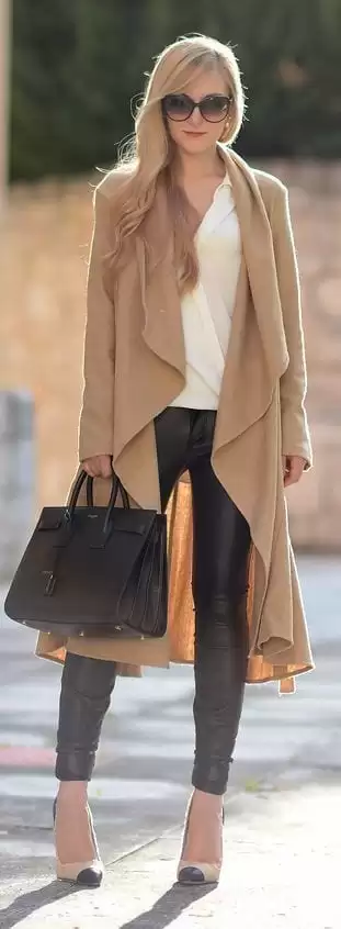 ↓ 3. Woollen Cape and Leather Pants
