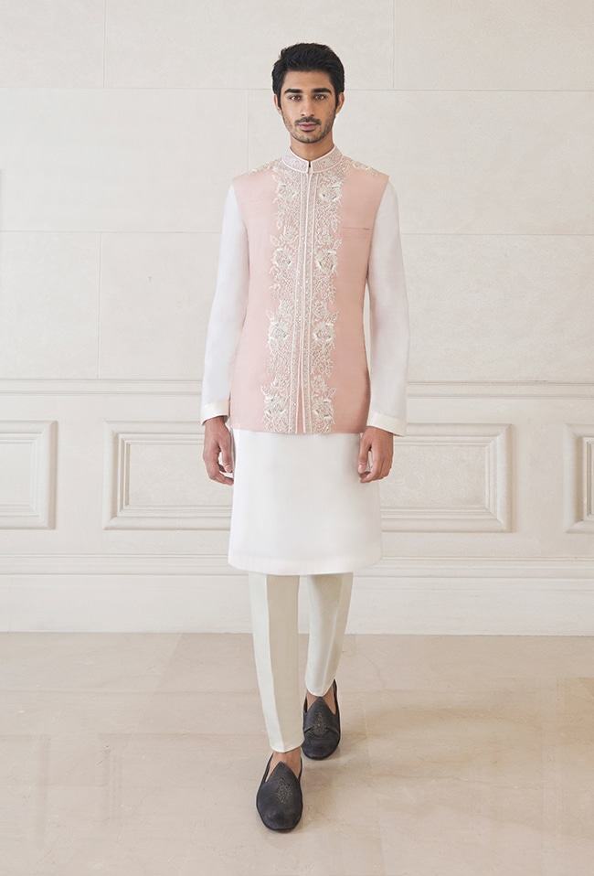 A luxurious number that you can never go wrong with is a classic bandhgala with white trousers. Regal with a whiff of elegant luxury, this ensemble will turn you into a prince in a hot minute. Dress it down by pairing it with traditional juttis or glam it up by accessorizing it with a pearl necklace, aviators and you’ve got yourself Fawad Khan’s look in the movie Khoobsurat.