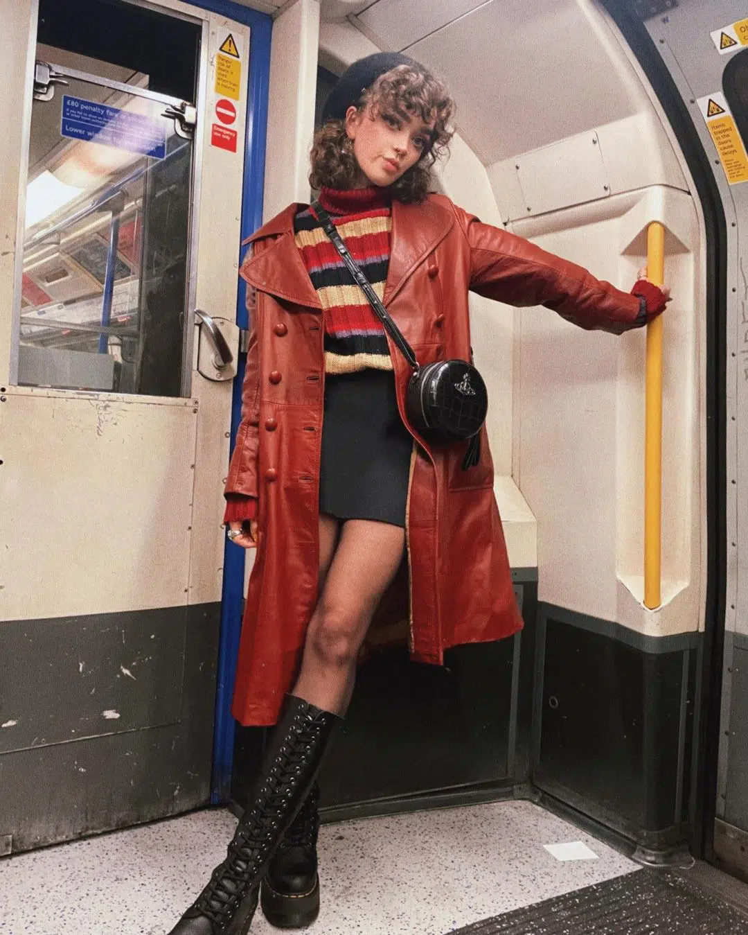 Oversized sweaters, skirts, and stockings paired with leg warmers create an effortlessly indie and dope outfit! And topped with the e-girl-inspired make-up is a cherry on the top. For more ideas like these, you can go through our earlier post on Leg Warmer Outfits.