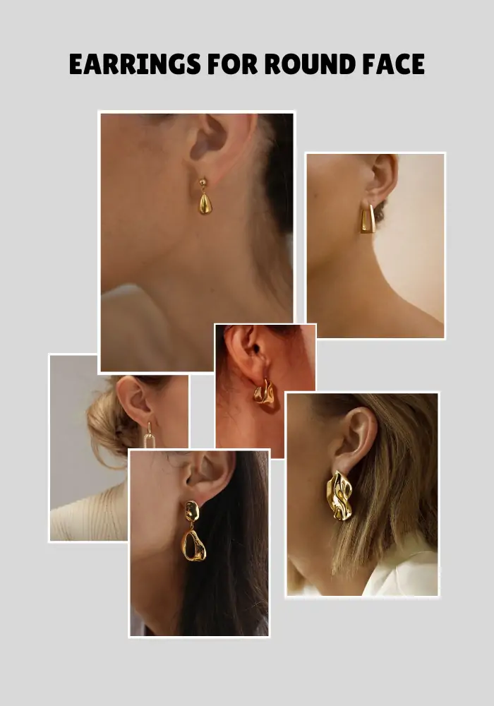 - Take your face shape into consideration. Long geometric earrings complement women with round faces. Another excellent option for lengthening the face is dangling or teardrop shapes. Graceful and feminine designs are preferable to large ones with lots of embellishments.