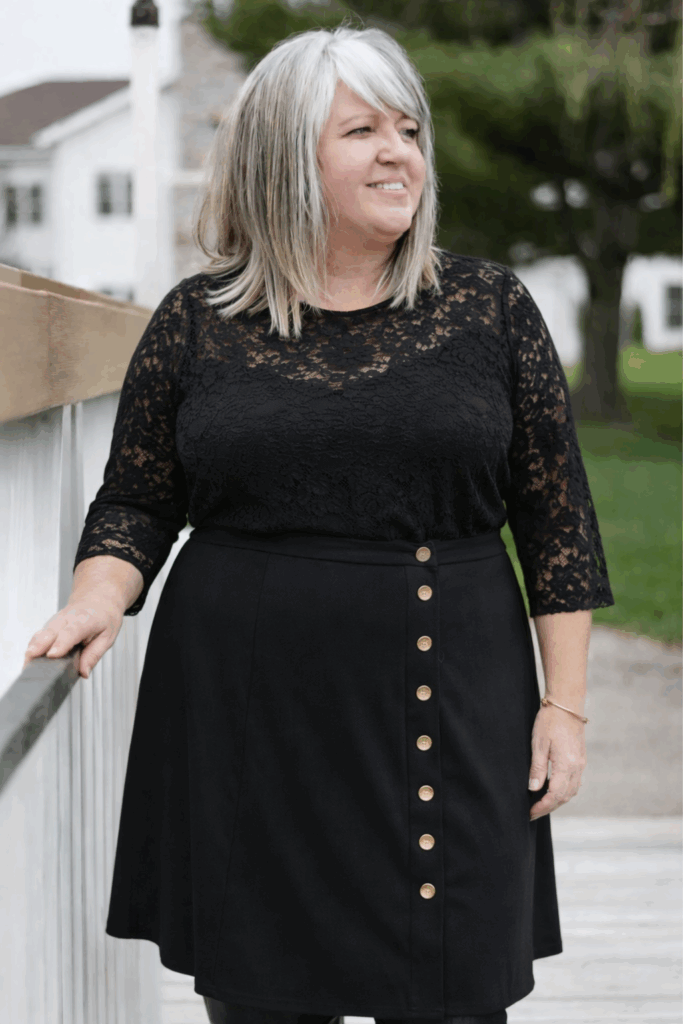 Black Lace Top with Button-Front Skirt