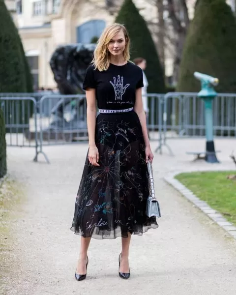 For a dinner date, a glitter-flared skirt is the perfect option for a night out, and pair it with a black and white top for a classic yet bold look. Throw on some dangling earrings and a structured bag to complete the outfit.