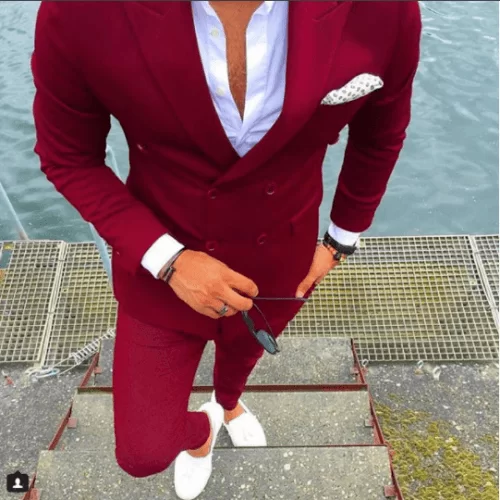 A maroon or royal blue suit will look perfect on a reception or even prom night. However, keep the shirt plain and white with matching white shoes to make it look modest.