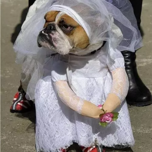 You need a groom for the wedding, too. Get your dog a tux and watch two little puppies running around in their wedding outfits. Try not to let the allergies act up.