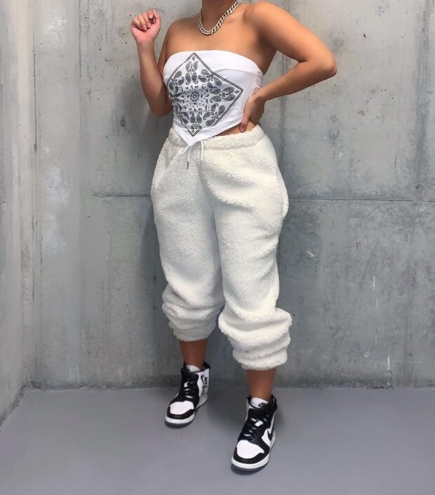 9 – White bandana Top Paired With Fleece White Sweatpants