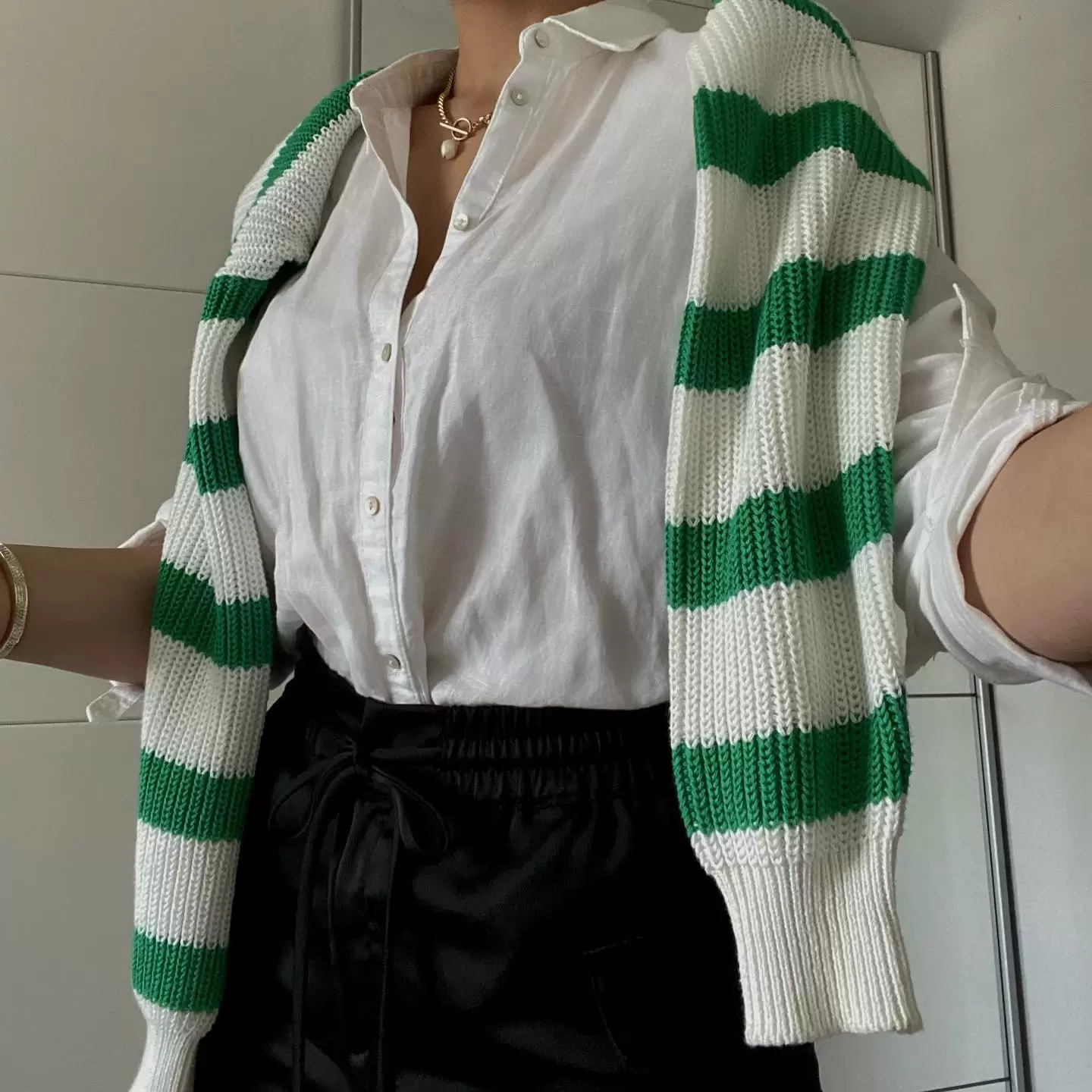 09 – Use a Selfie Stick to Capture Your Outfit Only, Focusing on the Neck and Below