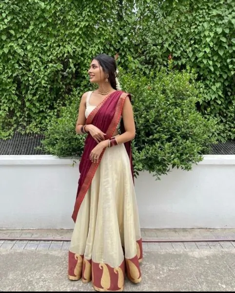 When it comes to the daily routine, wearing a saree that is light and comfy is ideal. You might not be willing to go into complicated styling daily. Hence, a saree that does not interfere with your daily activities would be a wise option. You might consider wearing a half saree for that purpose as well.