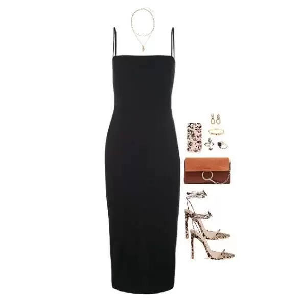 You can never go wrong with a simple halter neck black dress, and a figure-hugging leather belt.