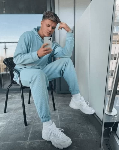 Navy tones are perfect for winter. Wear an ocean blue hoodie with sweatpants. Finish off the look with white sneakers that will help you excel in your treadmill and running sessions.