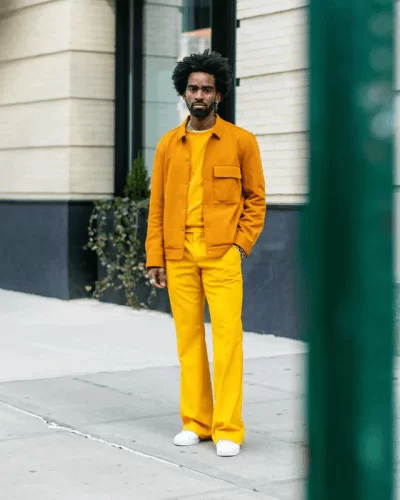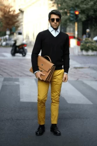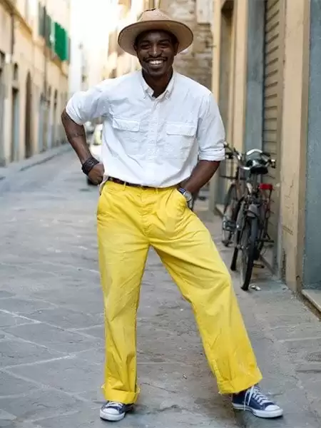 Once upon a time, men were very skeptical about sporting colored pants. Good thing, those times are long gone. Today, bright colors are worn by both men and women alike. One vibrant color that looks very snazzy on men is yellow.