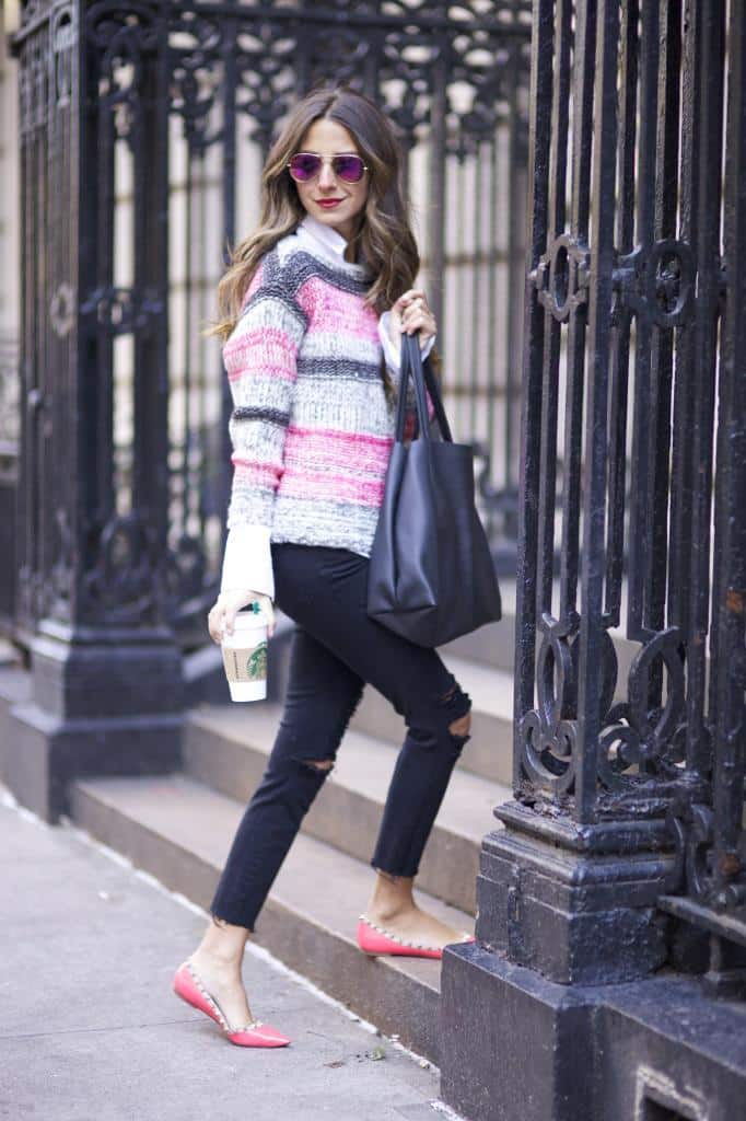 Pink and Black are such a power combo! Your skinny black jeans will look incredible with this pop of color.