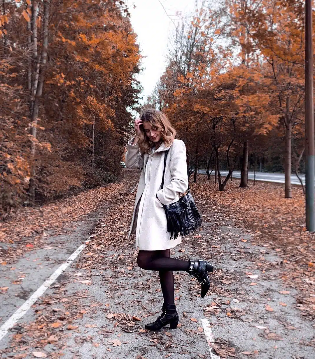 All you have to do is wear your new pair of carved out boots with a mini dress, layer your outfit up with a long woolen jacket to protect yourself from the colder dry winds, and for some warmth, try wearing fishnets or tights.