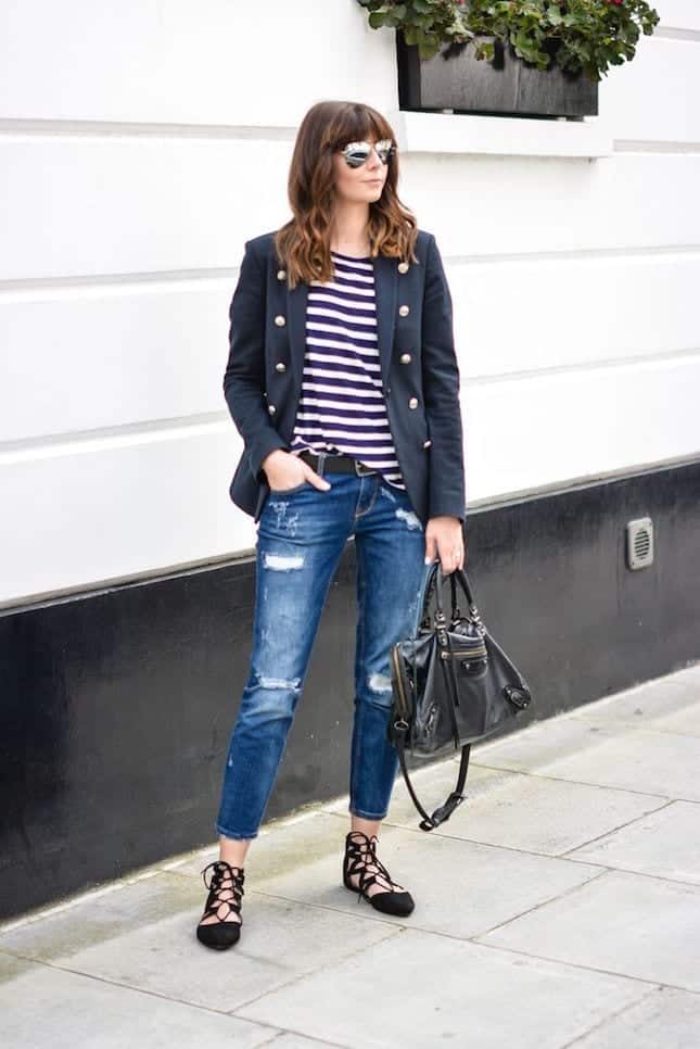 Blazers can look ultra-stylish and decent but to walk down many streets and to run around you need to have flat shoes as shown. These pointed pumps are giving all the highlight the whole attire needs.