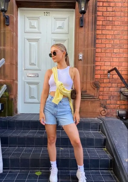 Our most preferred beach look involves wearing a tank top over faded or distressed denim shorts. It reflects the true summer vibe and offers both style and comfort in one. This look can be finished off with loose wavy curls and statement sunglasses. Apart from being a beach day look, it can be worn to parks for picnics or on a cycling day with friends. Here are 16 Cute Outfits with Tank Tops.