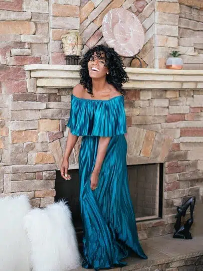Girls, you all deserve a fairytale ending in a princess-like outfit. Dress up tonight in a long silk flowy maxi that is featuring a cape-like detailing with an elastic boat neckline. This outfit will surely make you appear all elegant yet captivating. Go with nude makeup and wear your hair in tight curls. Highlight your look with diamond studs, and you are good to go.