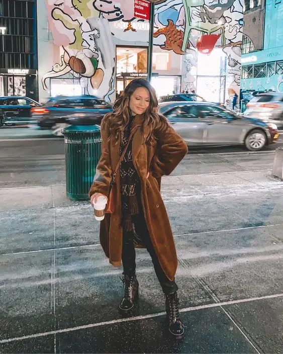 12 – Go For Soft Brown Coat and Snow Boots for Exploring New York